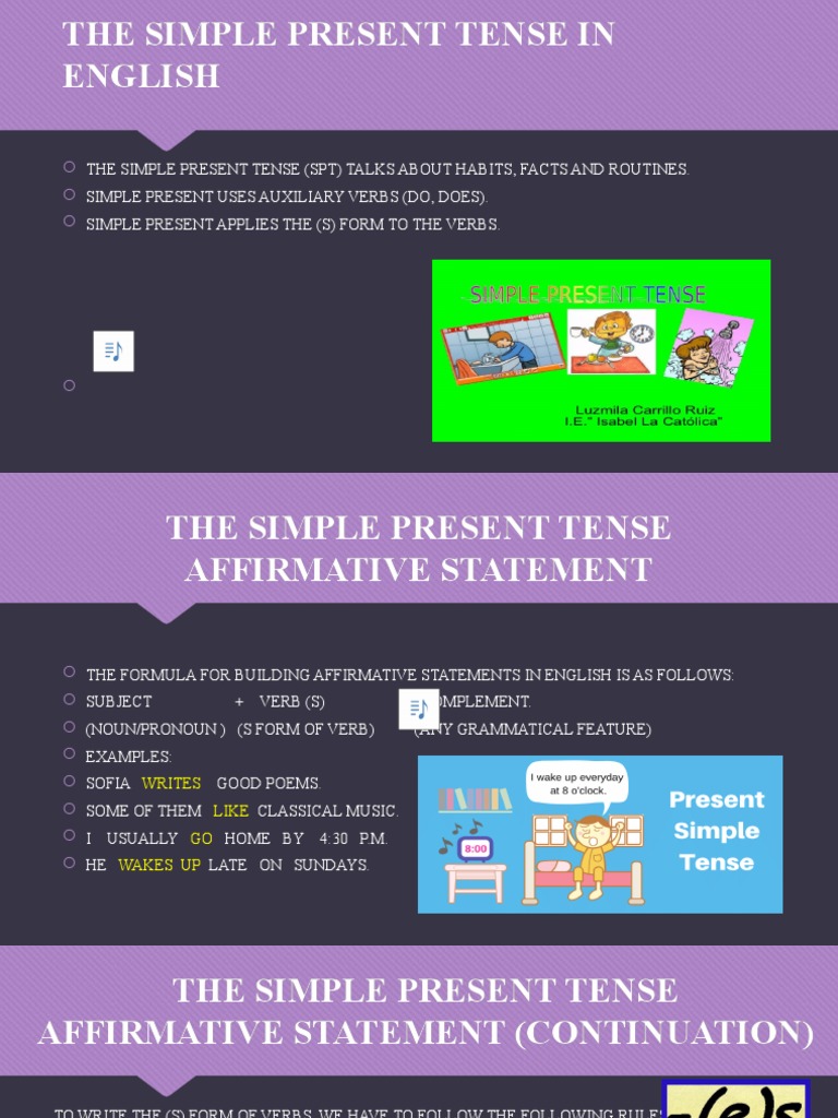 Simple present tense also called present indefinite tense, is used to express general statements and to describe actions that are usual or habitual in nature. (rules) the following sentences are also considered present simple: Subject is a person who is talking about you and me or any name. She doesn't feel so good. My son makes his bed. Present simple tense structure and formula: Subject + verb (v2) or irregular verb: What is the difference between simple present tense and present indefinite tense? You are not playing football now. Example sentences his wife sets the table. The simple present (or present simple) is the first tense that you learn in english. It is most commonly used for such a scenarios like; 12 tenses formula with example download pdf document: